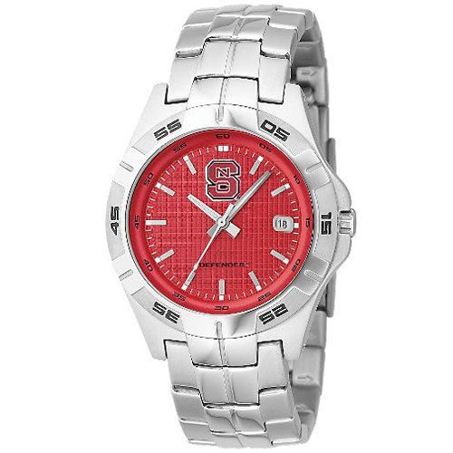 Show your school spirit with our exclusive North Carolina State University analog watch. Textured red logo dial is set in a stainless steel case with a comfortable contour bracelet.